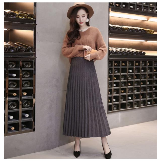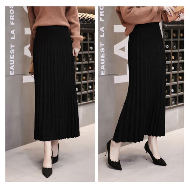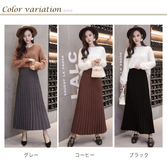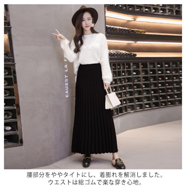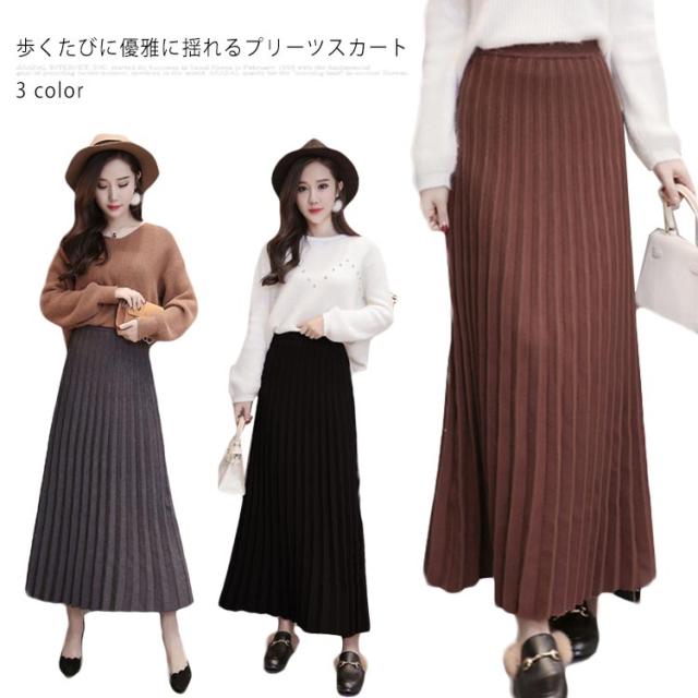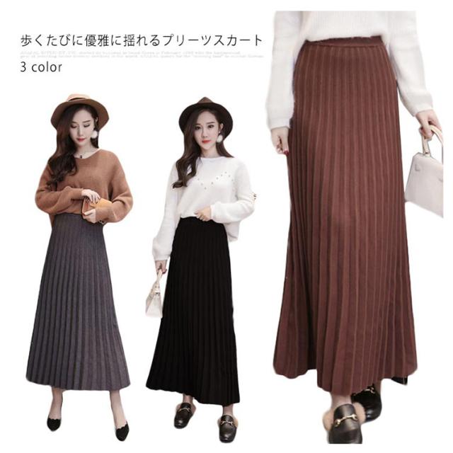 ニットスカート 秋冬 春 ニットプリーツスカート プリーツスカート ロングスカート フレアスカート ハイウエスト リブ ロング丈 無地 リブニット リブニット ボトムス マキシ丈 おしゃれ 秋冬 シンプル 通勤 デート