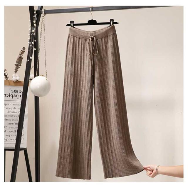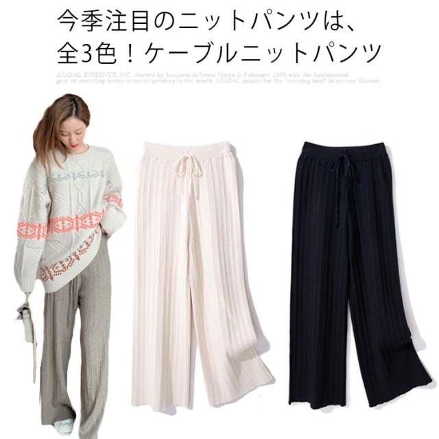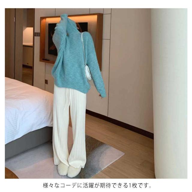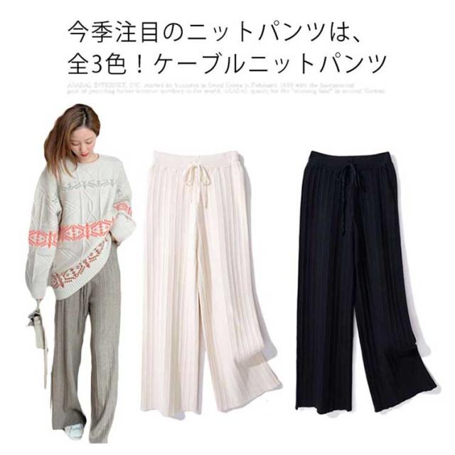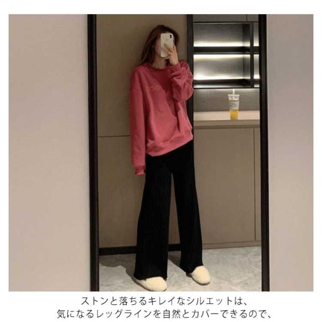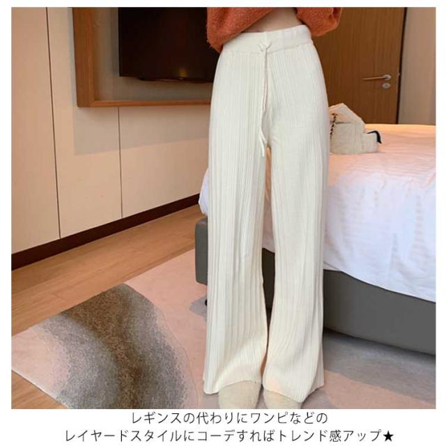 ニットパンツ ニット ワイドパンツ リブニットワイドパンツ レディース 春 秋 冬 リブニット ガウチョ ウエストゴム ニット リブ ゆるパンツ リラックス 楽ちん ロングパンツ フレアパンツ 着?せ 細身