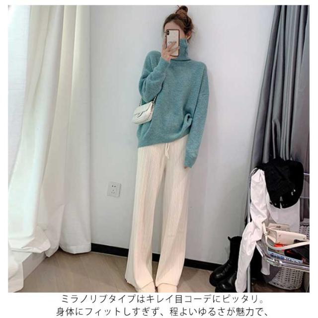 | 今季注目のニットパンツは、 程よいワイド感とストンと落ち感のあるスタイルが◎ ほどよい肉厚感のニット素材で暖かみあり! ストンと落ちるキレイなシルエットは、 気になるレッグラインを自然とカバーできるので、 自信を持ってはきこなせます! リブタイプは縦のラインを強調し美脚効果抜群。 ミラノリブタイプはキレイ目コーデにピッタリ。 身体にフィットしすぎず、程よいゆるさが魅力で、 レギンスの代わりにワンピなどの レイヤードスタイルにコーデすればトレンド感アップ★ 様々なコーデに活躍が期待できる1枚です。 | |