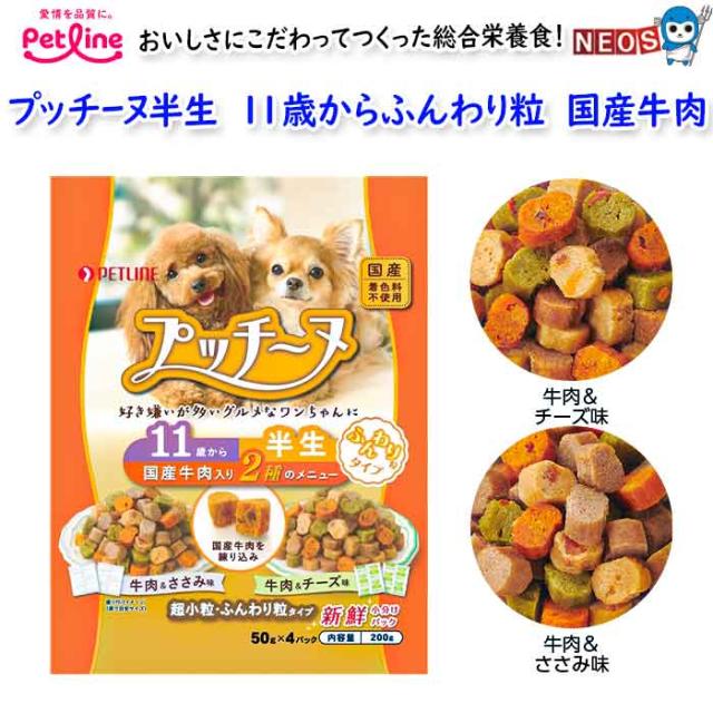 ペットライン プッチーヌ半生 11歳からふんわり粒 国産牛肉 200g(50g×4)