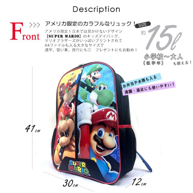 リュックサック スーパーマリオ センター Lサイズ 男の子 女の子 リュック 大きめ 子供から大人まで キャラクター 通学バッグ