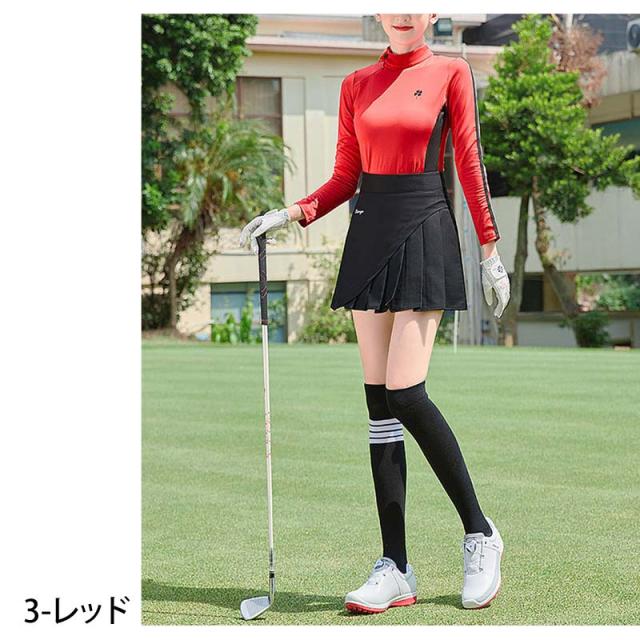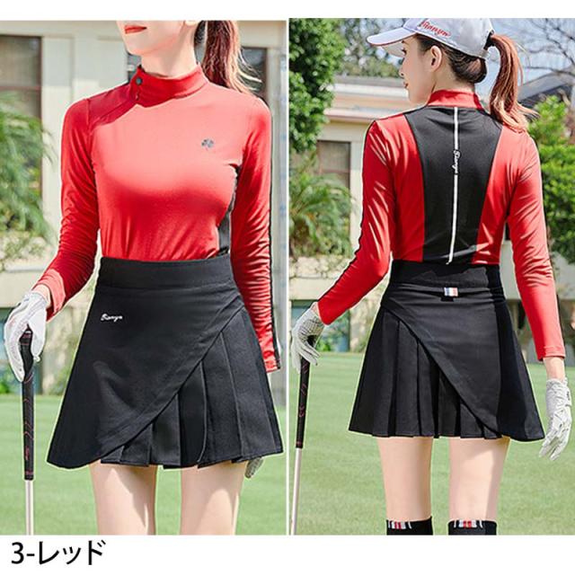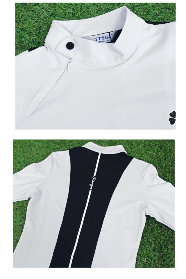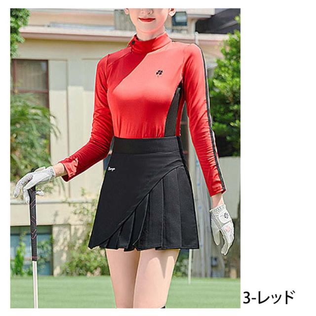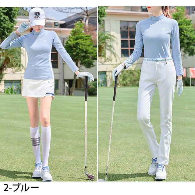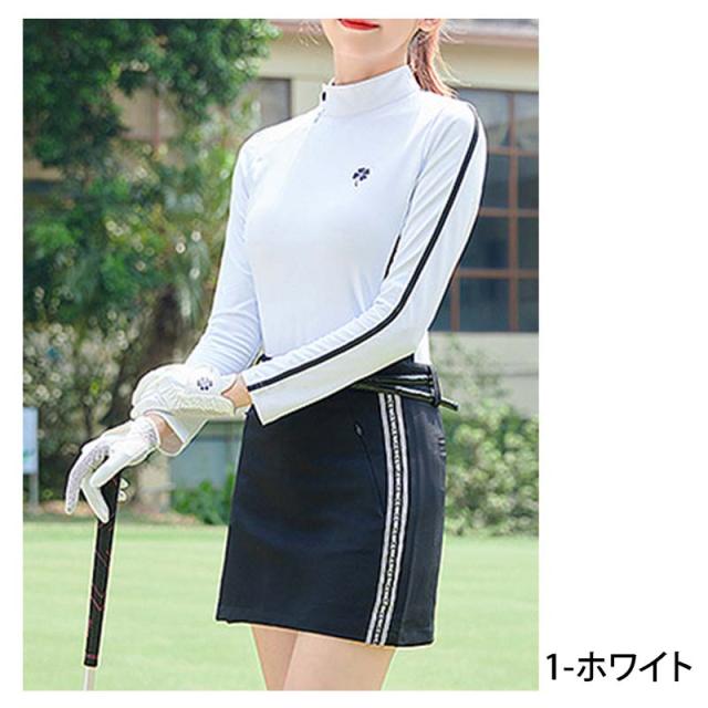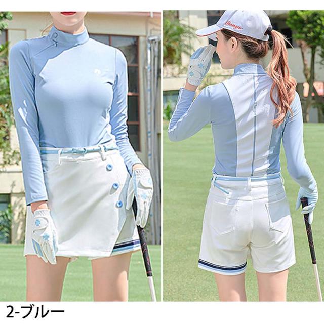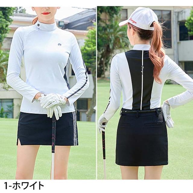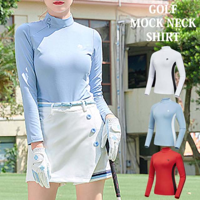 送料無料 新作 ゴルフウェア レディース ゴルフ 変形モックネック ポロシャツ ハイネック 長袖 ストレッチ 伸縮 トップス 無地 切替 カットソー おしゃれ かわいい 韓国系 春夏 秋冬 ゆうパケ