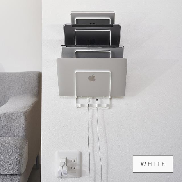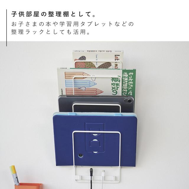 置き場所に困るノートパソコンや学習用タブレットを壁面にすっきり収納。石こうボードピンでお好みの位置に設置可能。