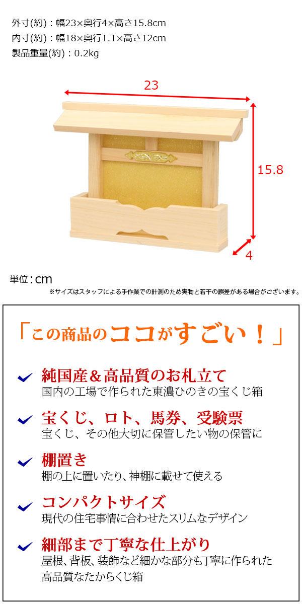 幅23cm 奥行4cm 高さ15.8cm 東濃ひのき 金運祈願