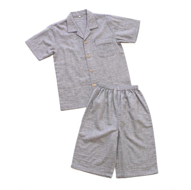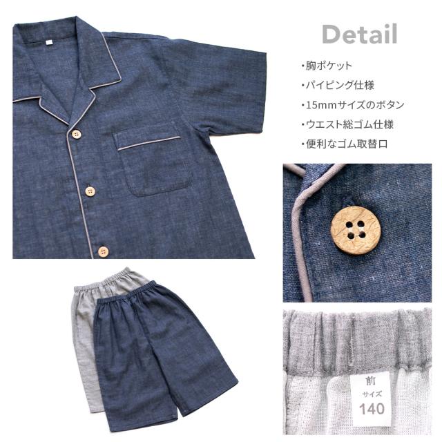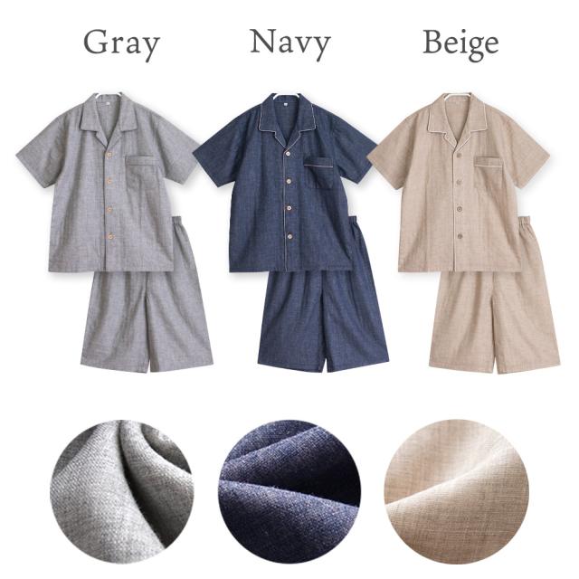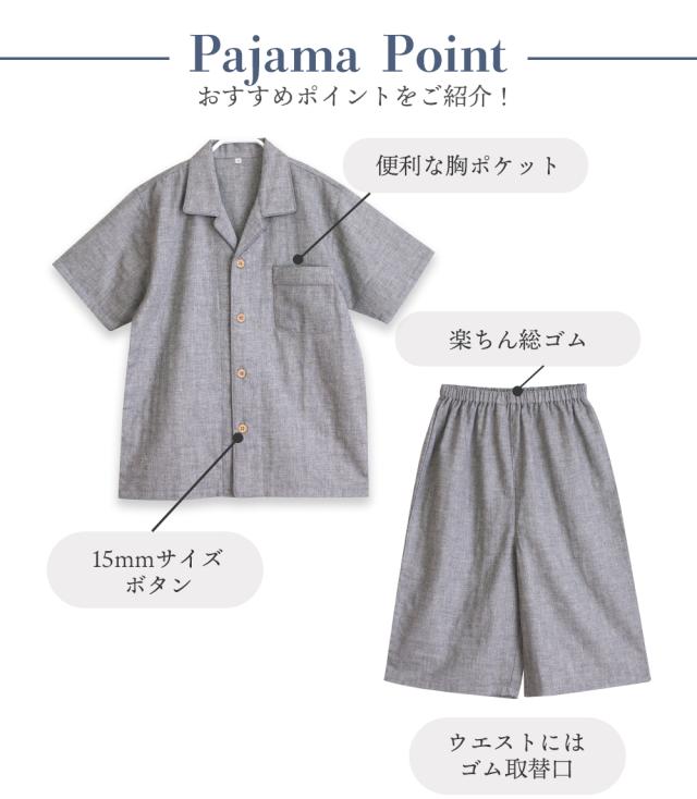 パジャマ キッズ 男の子 女の子 綿100% ダブルガーゼ 半袖 春 夏 前開き ボタン シャツ 無地 130 140 150 160 家族 家族 おそろい リンクコーデ リンクコーデ ギフト プレゼント メール便なら 送料無料 98351