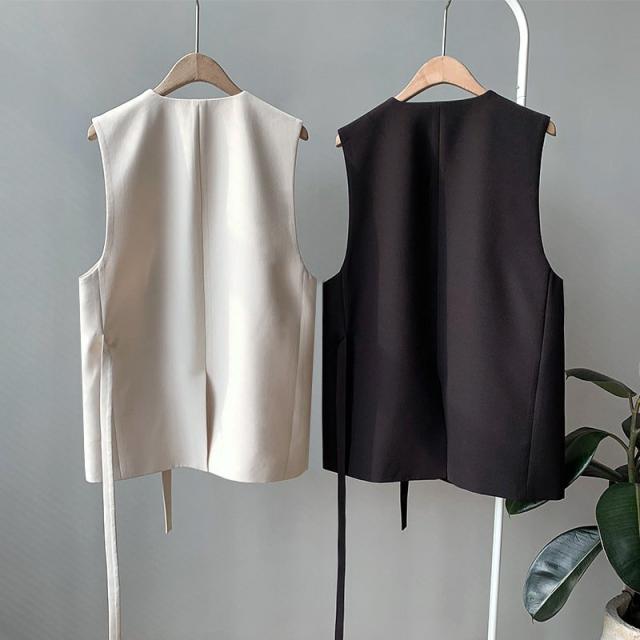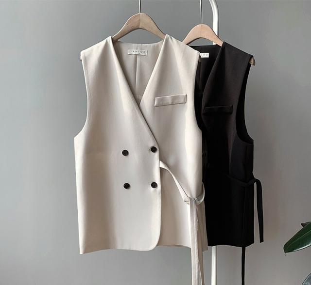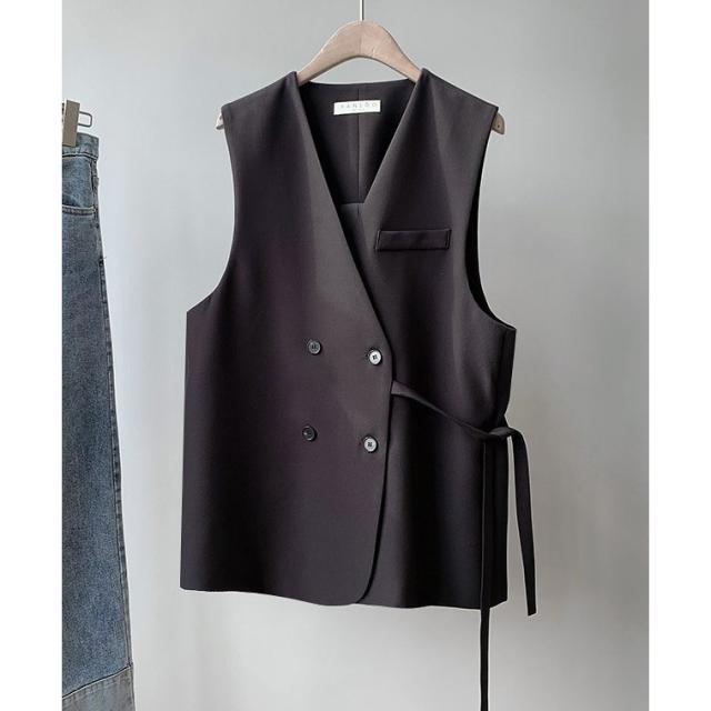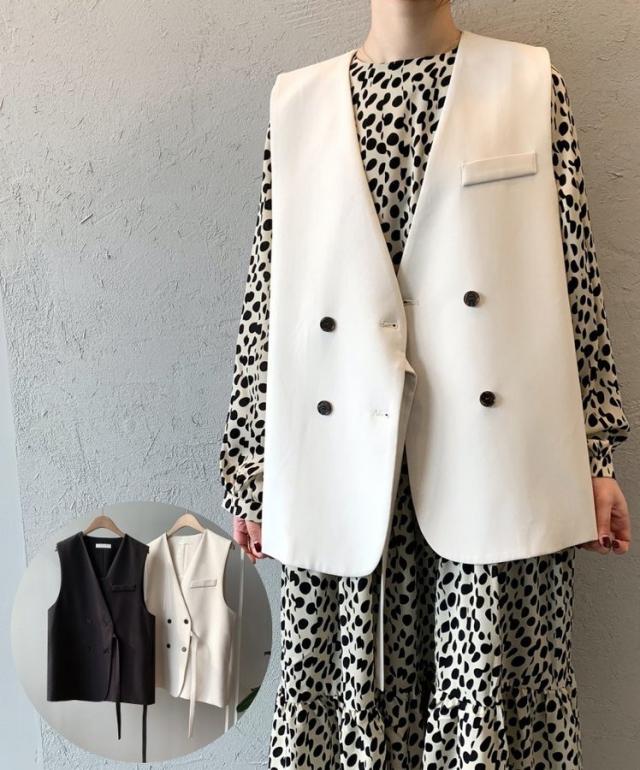 胸ポケット 前開き 女性 レディース トップス ダブルボタン ベスト ジレ Vネック 無地 シンプル きっちり お洒落 きれいめ お出かけ