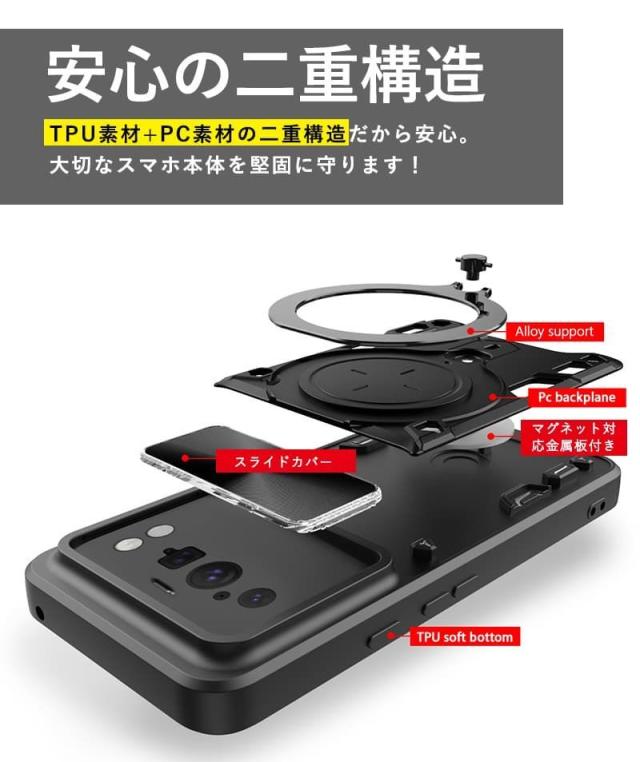カメラレンズ部分にスライドカバー付きで、激しい運動時や不慮の事故でスマホが傷付くリスクを最小限に抑えます。