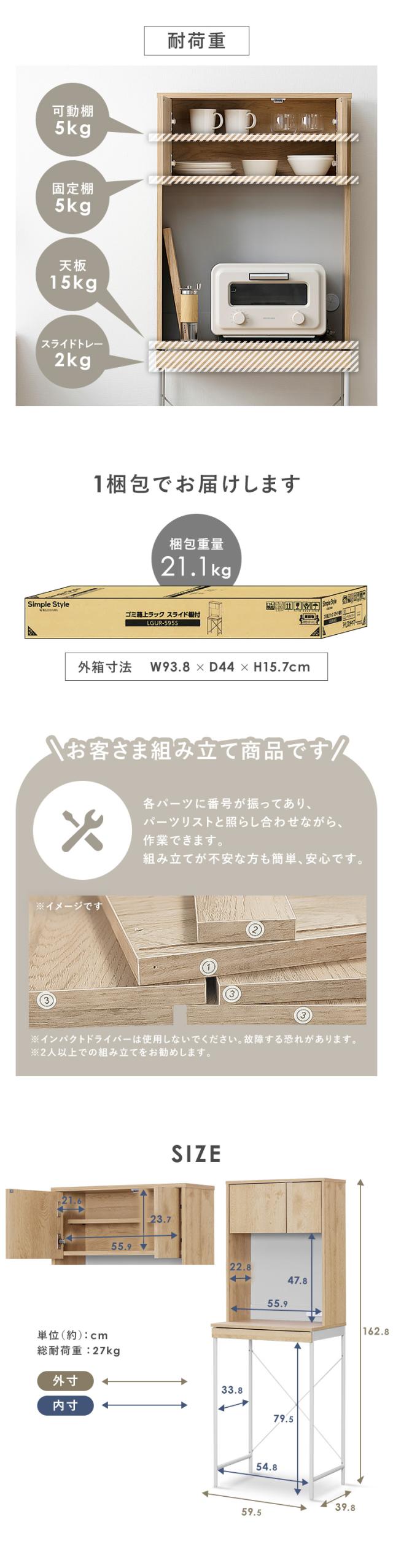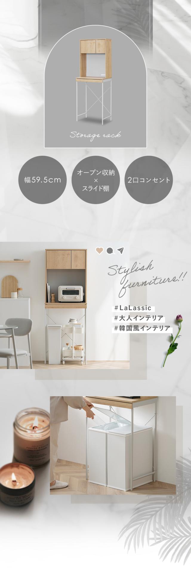 ラック 棚 食器棚 アイリスオーヤマ * LGUR-595S 幅60 収納 オープン キッチン キッチンラック スリム ゴミ箱 一人暮らし 新生活 ごみ箱 レンジ台 シンプル コンパクト スライドトレー 薄型収納 木目調 コンセント付 ゴミ箱上ラック 韓国