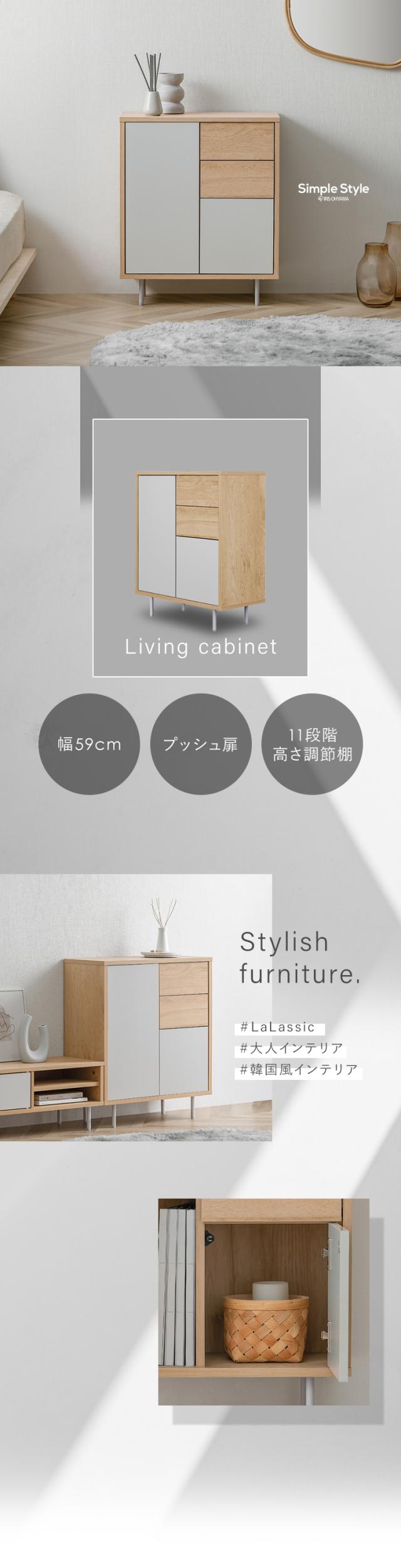 お部屋に馴染むシンプルなデザインのリビングキャビネットです。