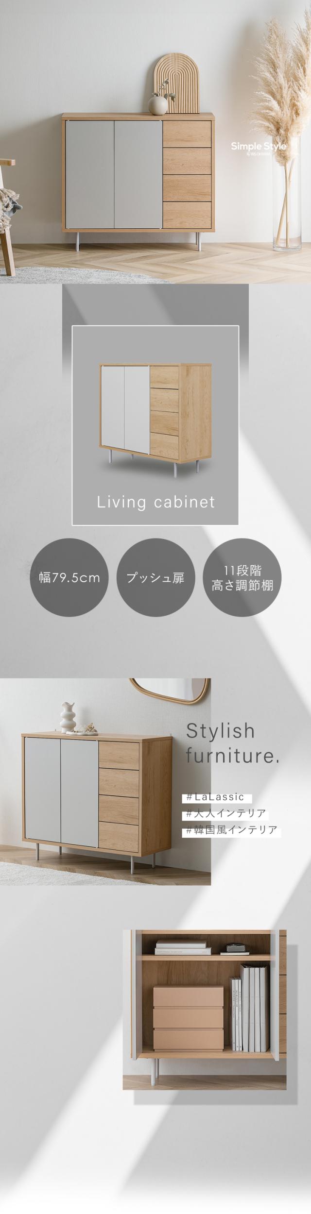 お部屋に馴染むシンプルなデザインのリビングキャビネットです。