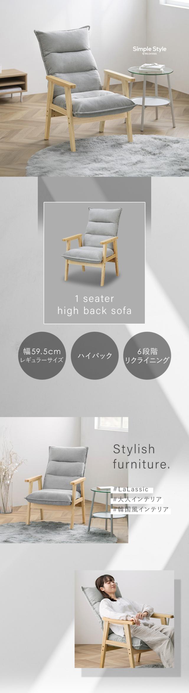 無駄なく、ちょうどいいサイズ感の1人掛けワイドハイバックソファです。