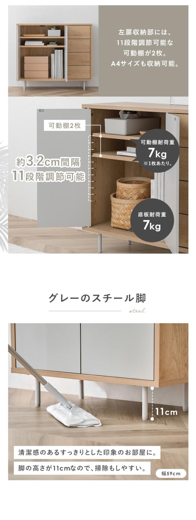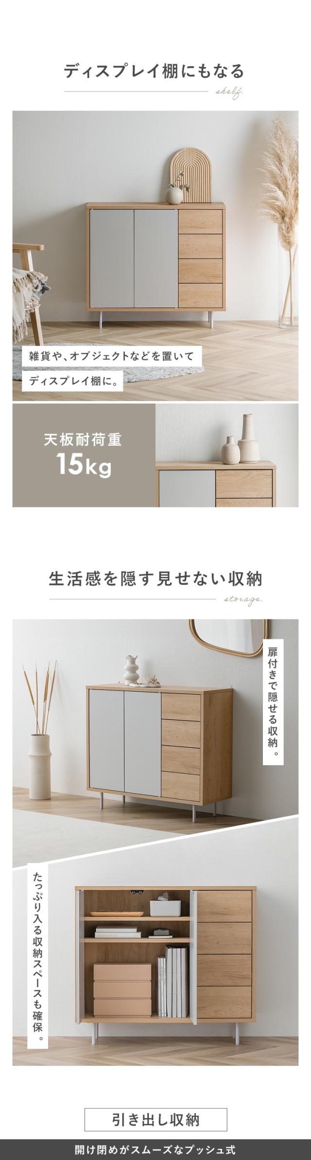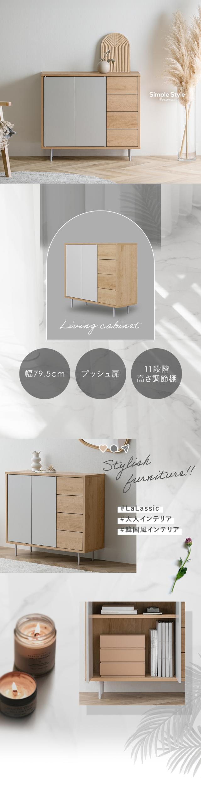 キャビネット 棚 収納 リビングキャビネット金属脚付き LRCS-795 ナチュラル/グレー 脚付き リビング サイドボード リビングボード シンプル 木目調 Simple Style LaLassic アイリスオーヤマ 送料無料