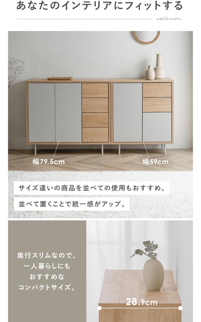お部屋に馴染むシンプルなデザインのリビングキャビネットです。