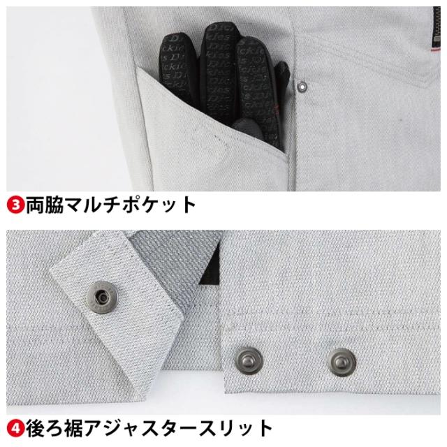◇両脇マルチポケット 後ろ裾アジャスタースリット タブレットも入る内ポケット(10インチまで) 両袖マルチポケット 深さのある両胸縦ポケット アーマーパッド 左胸落下防止コードループ付 消臭効果 消臭テープ付 男女対応 反射パイピング
