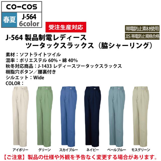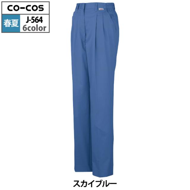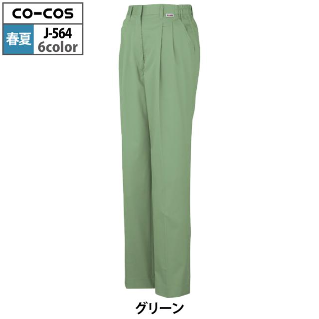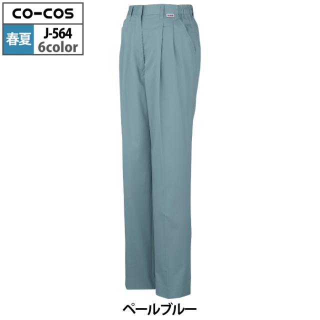 コーコス 作業服 春夏用 J-564 製品制電レディースツータックスラックス(脇シャーリング) EL
