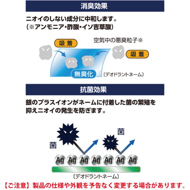 ◇デオドラントネーム 近接空間の悪臭を吸着し・中和することにより臭気を軽減する無機物微粒子と銀成分を特殊な樹脂に練りこみフィルム化し・これを繊維ネーム裏面にラミネートしたものです。