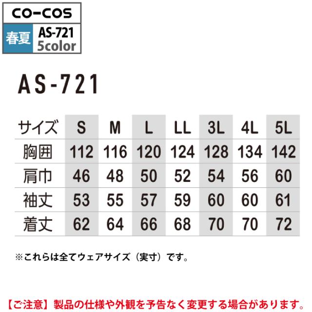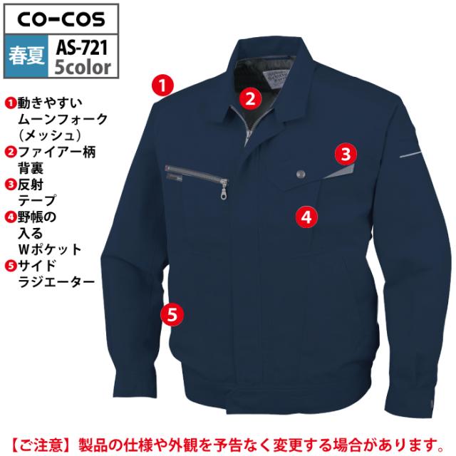 コーコス 作業服 春夏用 AS-721 長袖ブルゾン 4L-5L