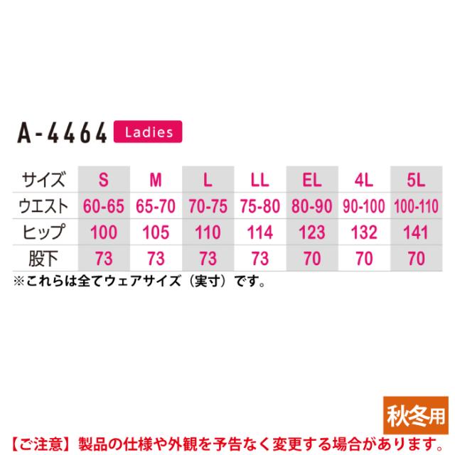 コーコス 作業服 秋冬用 A-4464 エコ製品制電レディースツータックスラックス(脇シャーリング) S-LL