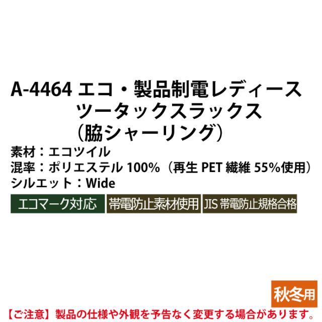 【A-4464 エコ製品制電レディースツータックスラックス】