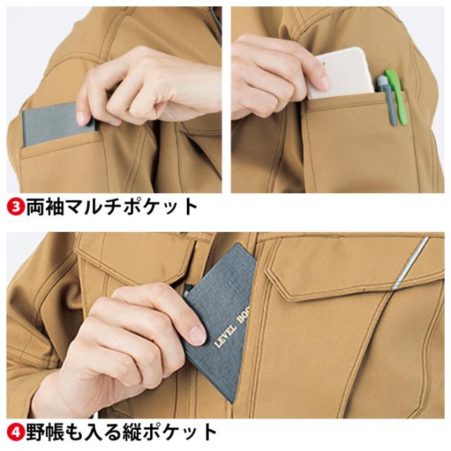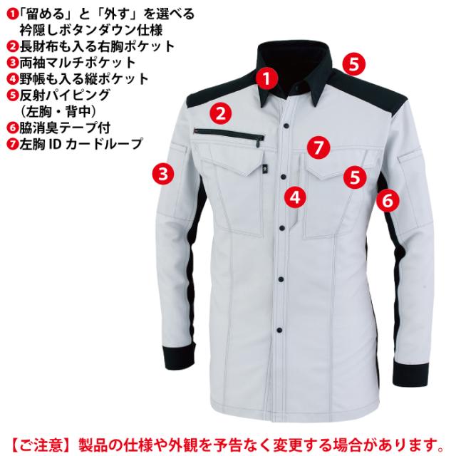 ◇JIS帯電防止企画合格 帯電防止素材使用 反射パイピング 消臭効果 「留める」と「外す」を選べる衿隠しボタンダウン仕様 長財布も入る右胸ポケット 両袖マルチポケット 脇消臭テープ 野帳も入る縦ポケット 左胸IDカードループ