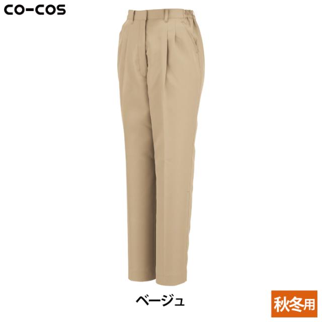 コーコス 作業服 秋冬用 A-4464 エコ製品制電レディースツータックスラックス(脇シャーリング) EL