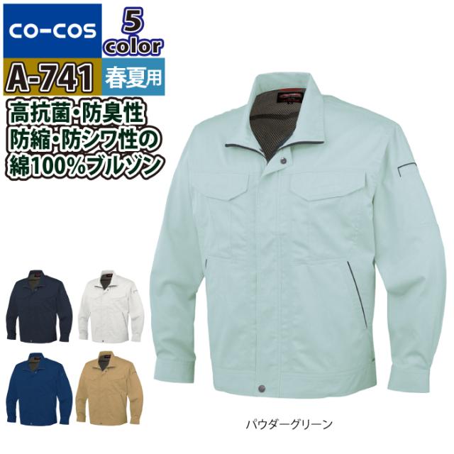 コーコス 作業服 春夏用 A-741 抗菌防臭防縮長袖ブルゾン(前ファスナー仕様) S-LL