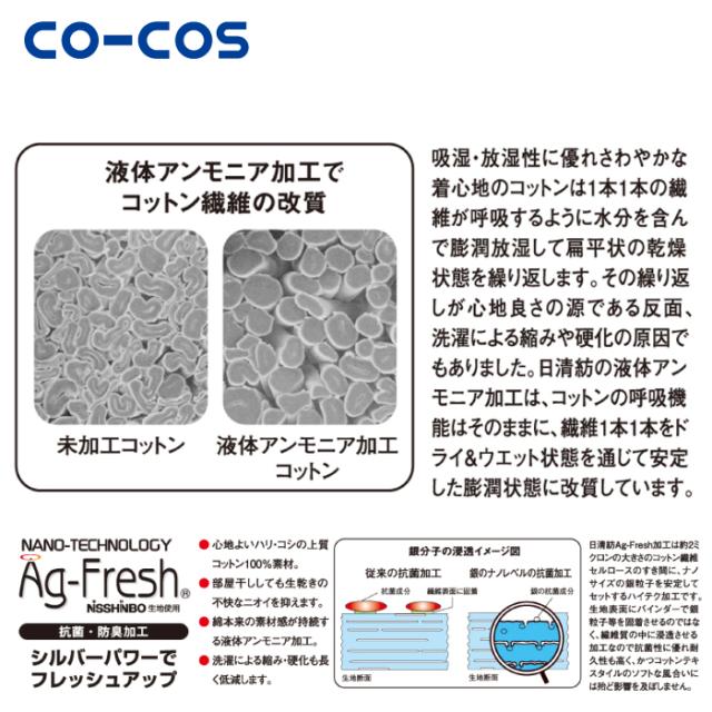 ◇銀ナノ抗菌加工が高い抗菌・防臭性を・液体アンモニア加工が防縮・防シワ性を実現。
