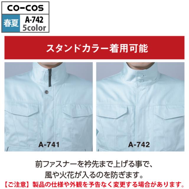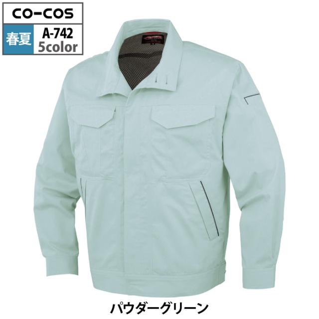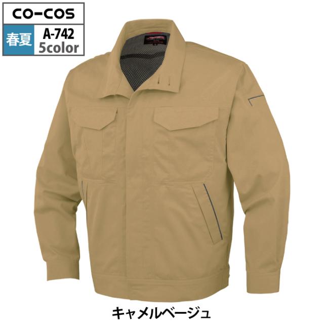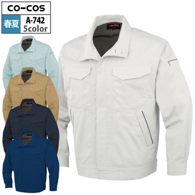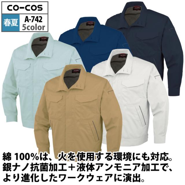 コーコス 作業服 春夏用 A-742 抗菌防臭防縮長袖ブルゾン(前ヒヨクボタン仕様) EL