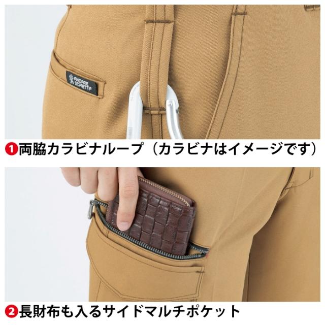 ◇両脇カラビナループ付 右脇ポケット内側コインポケット マルチポケット