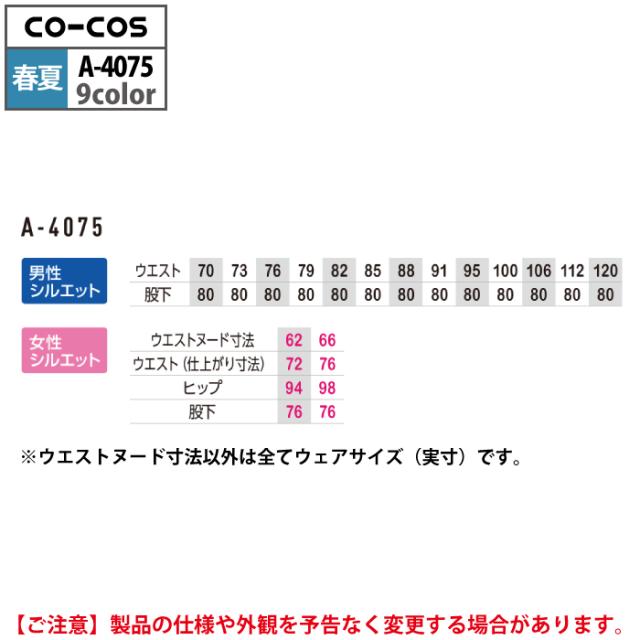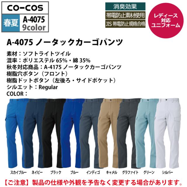 コーコス 作業服 春夏用 A-4075 ノータックカーゴパンツ 112-120