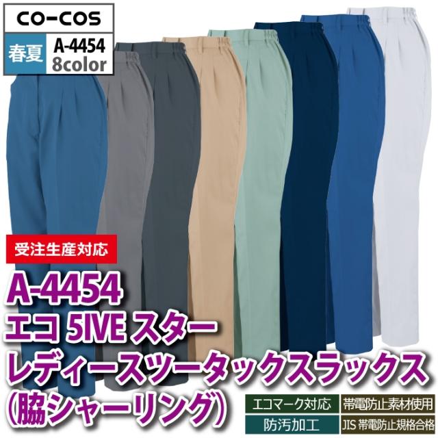 コーコス 作業服 春夏用 A-4454 エコ5IVEスターレディースツータックスラックス(脇シャーリング) S-LL