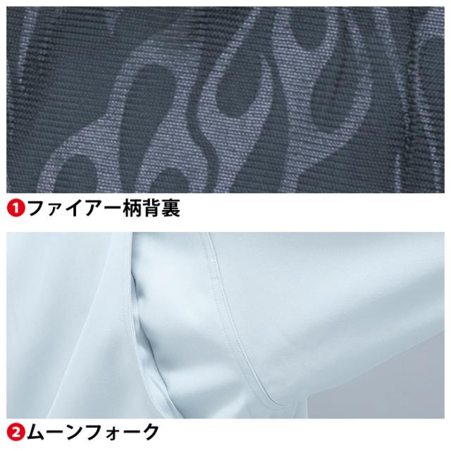◇帯電防止素材使用 吸汗速乾メッシュ 動きやすいムーンフォーク ファイアー柄背裏 反射テープ 野帳の入るWポケット サイドラジエーター