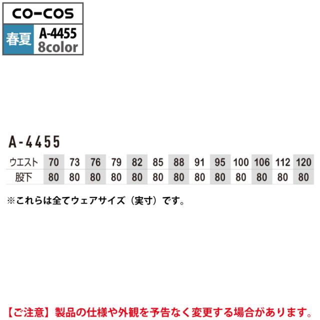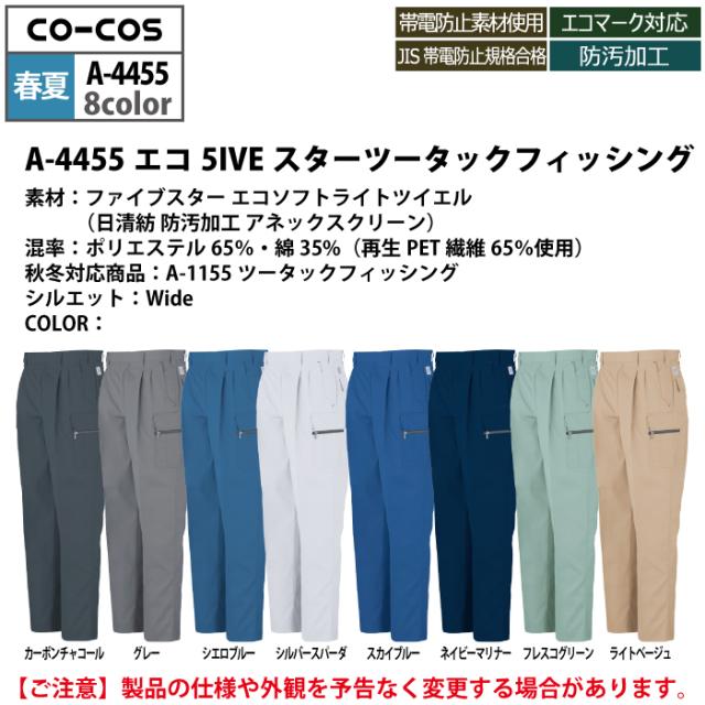 コーコス 作業服 春夏用 A-4455 エコ5IVEスターツータックフィッシング 70-85