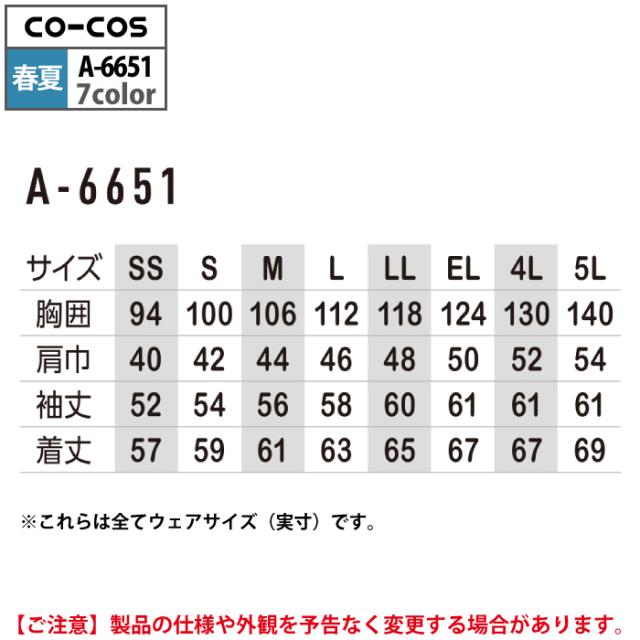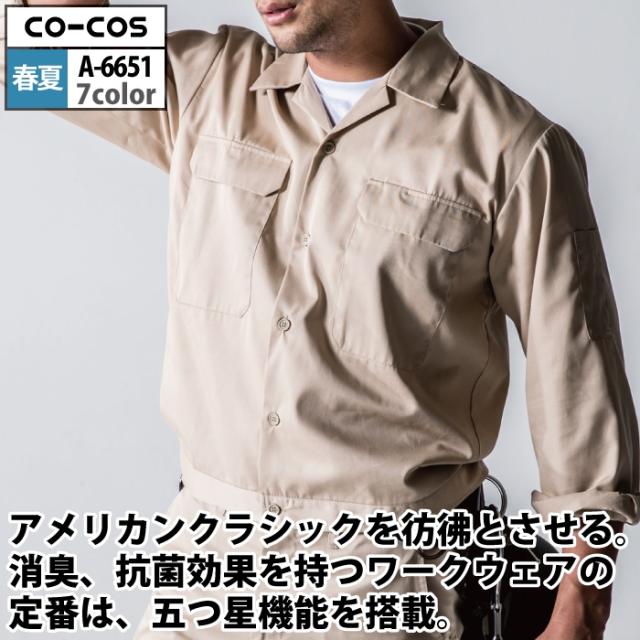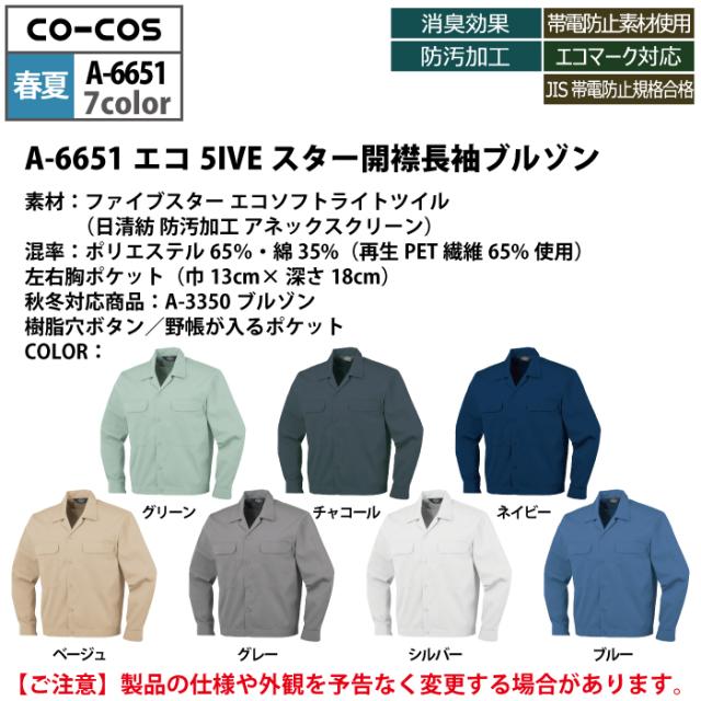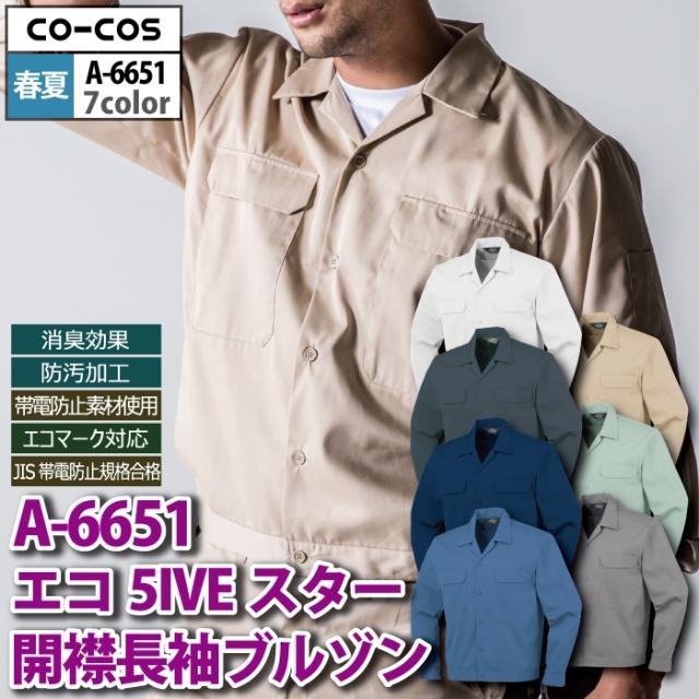 コーコス 作業服 春夏用 A-6651 エコ5IVEスター開襟長袖ブルゾン SS-LL