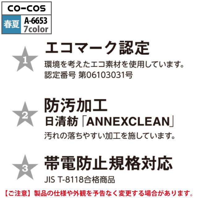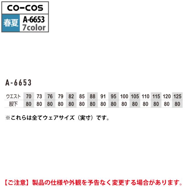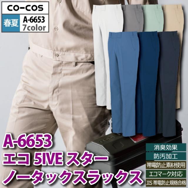 コーコス 作業服 春夏用 A-6653 エコ5IVEスターノータックスラックス 88-105