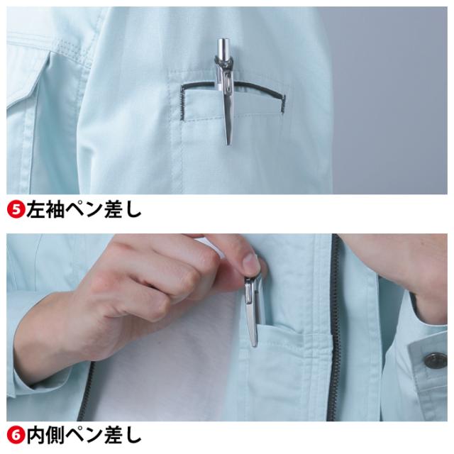 ◇左袖ペン差し 左胸ポケット(ペン差し付) 内側ペン差し アクションプリーツ 収納ポケット 裾アジャスター スタンドカラー着用可能 消臭効果