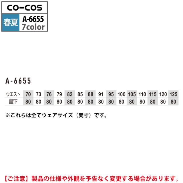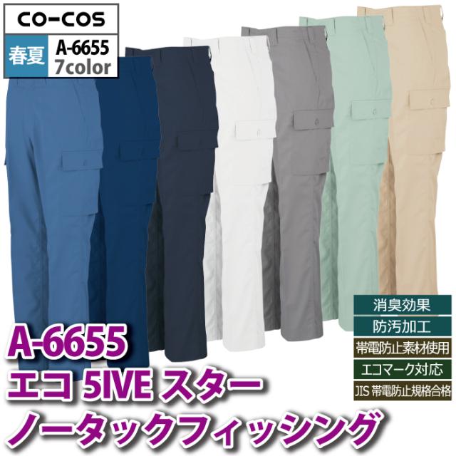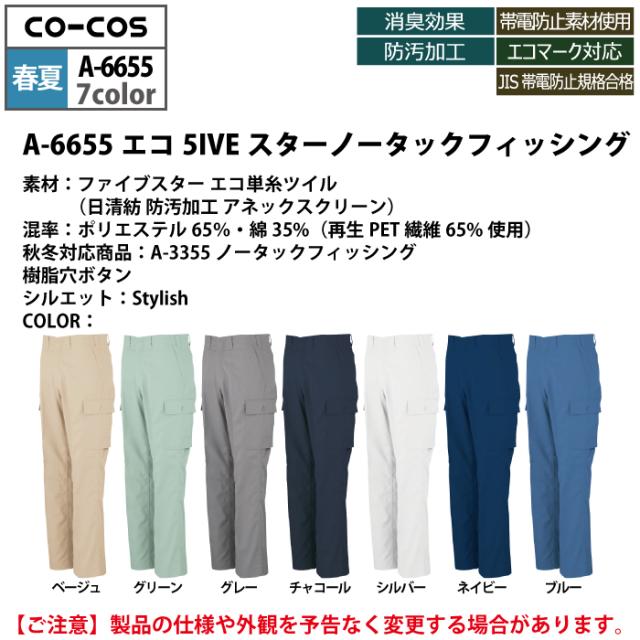 コーコス 作業服 春夏用 A-6655 エコ5IVEスターノータックフィッシング 88-105