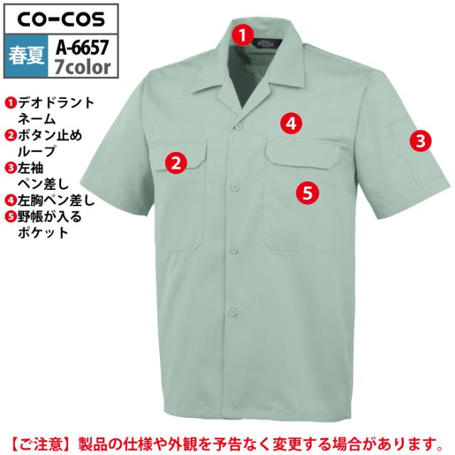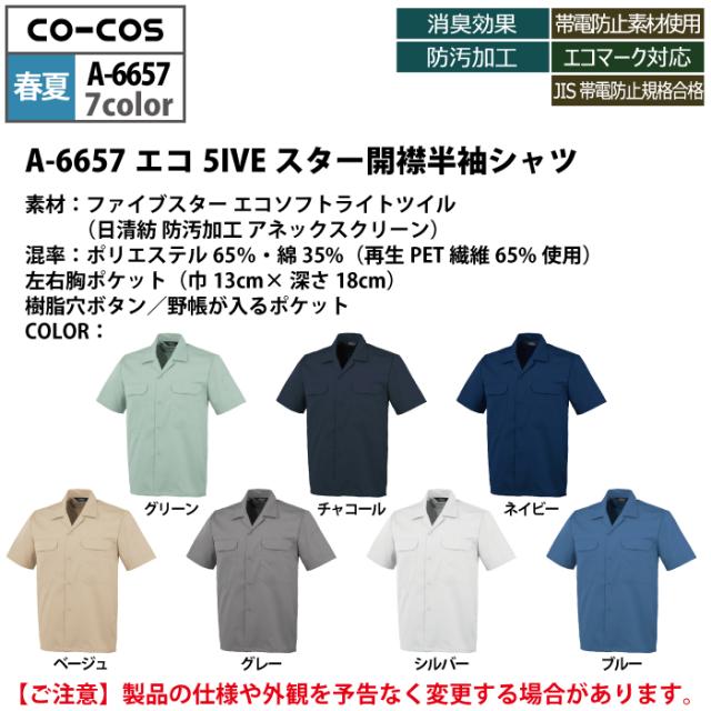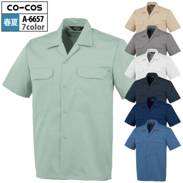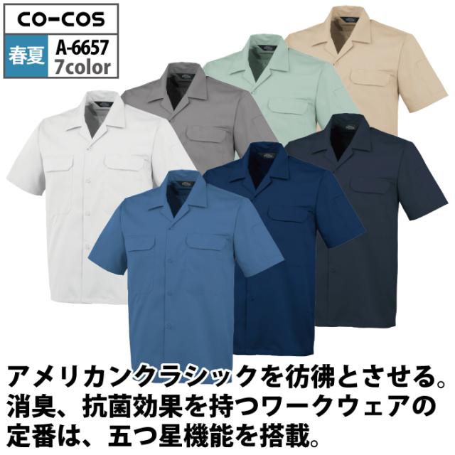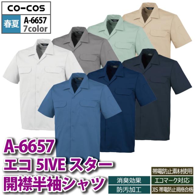 コーコス 作業服 春夏用 A-6657 エコ5IVEスター開襟半袖シャツ SS-LL