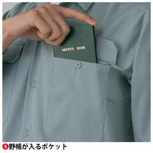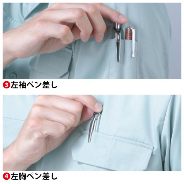 ◇JIS帯電防止規格合格・エコマーク対応・帯電防止素材使用・防汚加工・消臭効果・デオドラントネーム・ボタン止めループ・左袖ペン差し・左胸ペン差し・野帳が入るポケット・樹脂穴ボタン