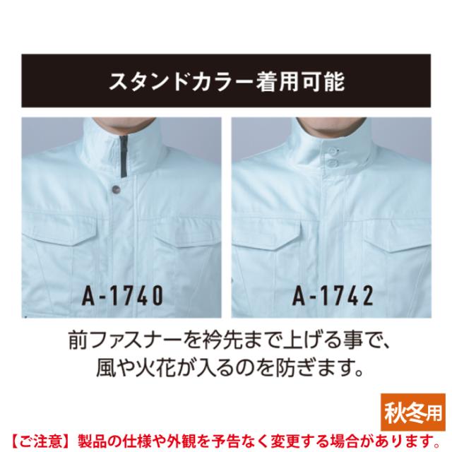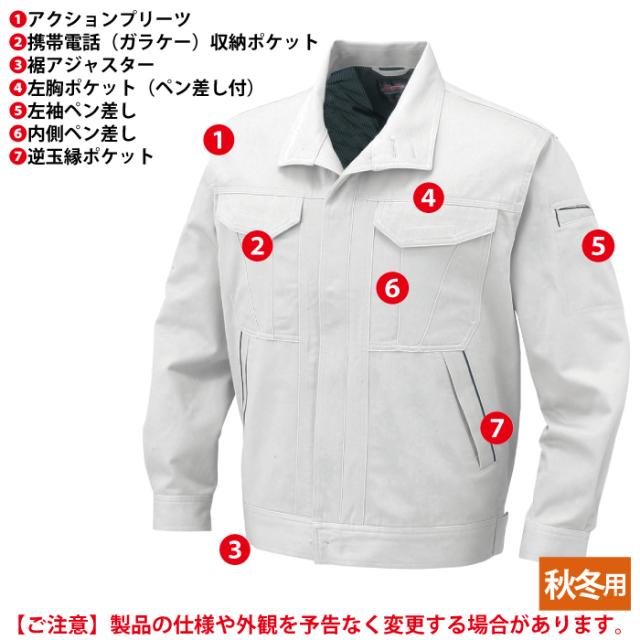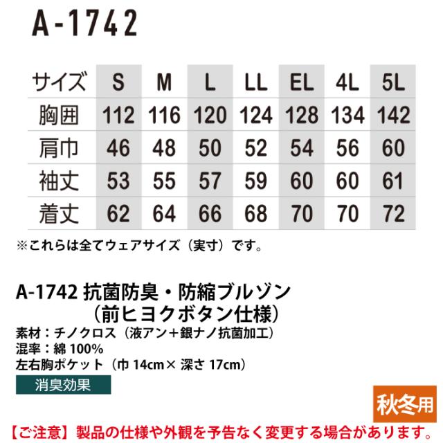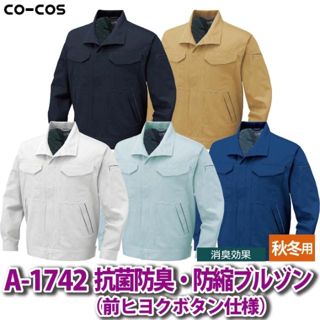 コーコス 作業服 秋冬用 A-1742 抗菌防臭防縮ブルゾン(前ヒヨクボタン仕様) 4L-5L