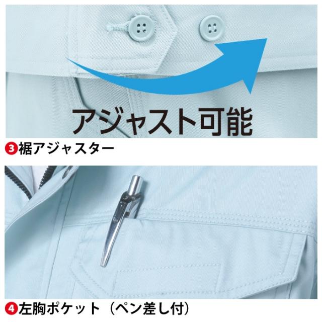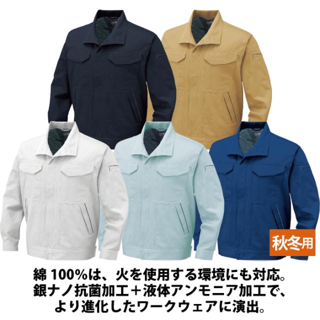 ◇銀ナノ抗菌加工+液体アンモニア加工で・より進化したワークウェアに演出。