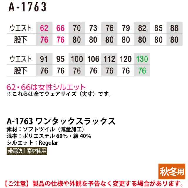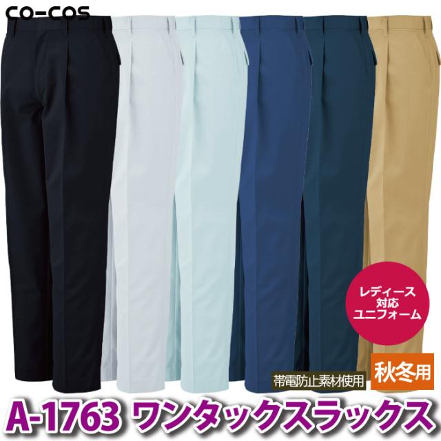 コーコス 作業服 秋冬用 A-1763 ワンタックスラックス 62-85