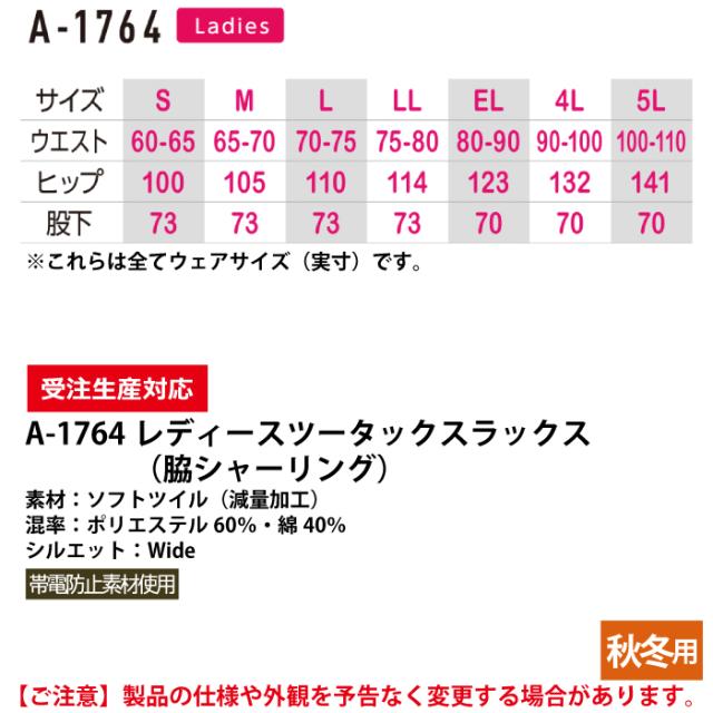 A-764 レディースツータックスラックス