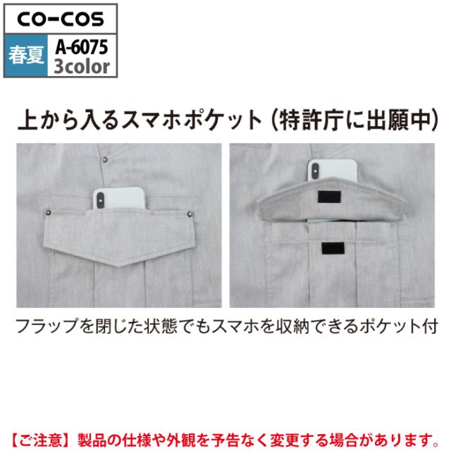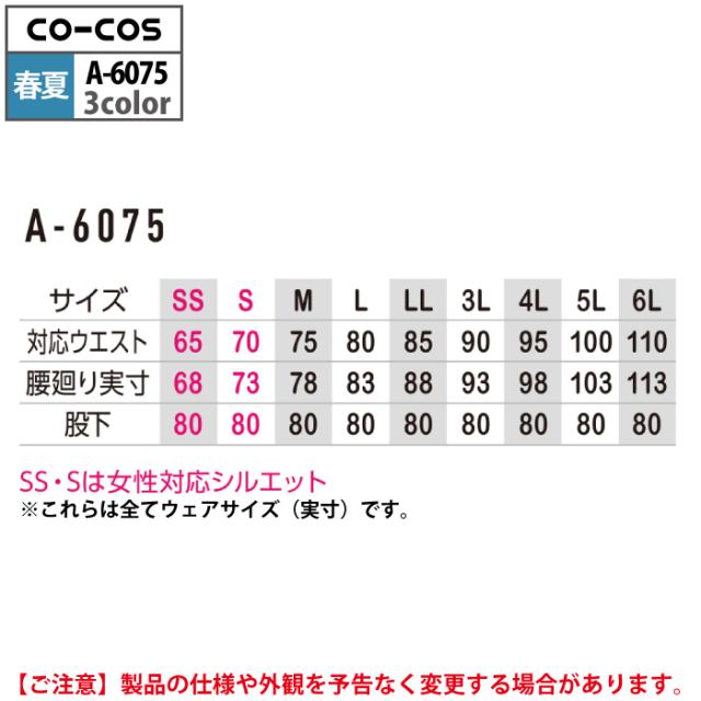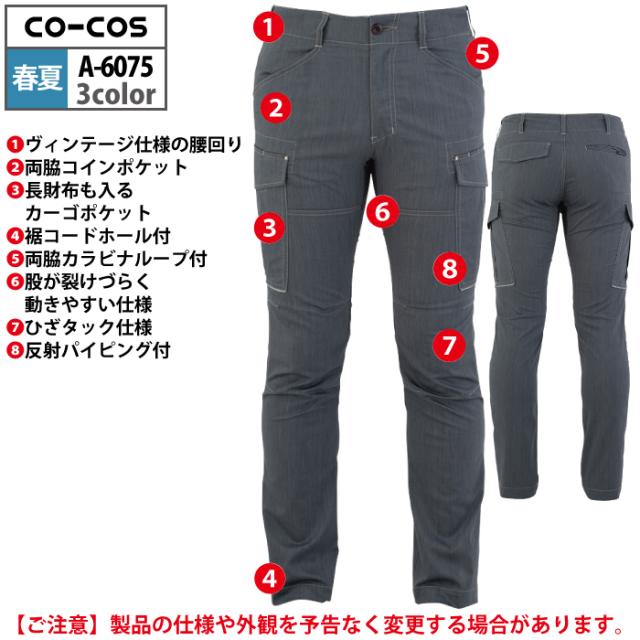 コーコス 作業服 春夏用 A-6075 ストレッチカーゴパンツ 4L-6L