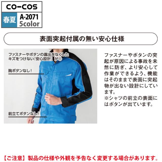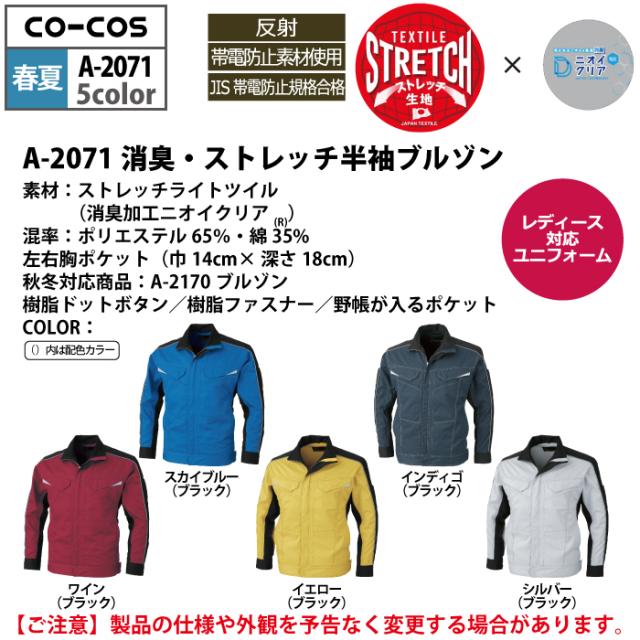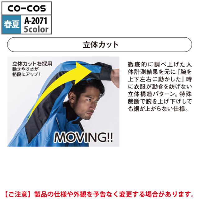 コーコス 作業服 春夏用 A-2071 消臭ストレッチ長袖ブルゾン 3L