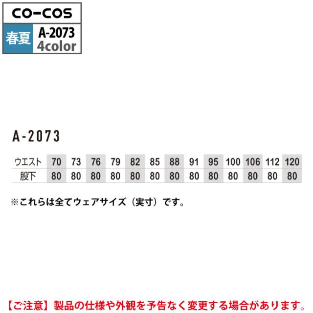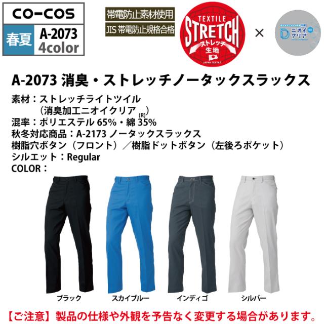 コーコス 作業服 春夏用 A-2073 消臭ストレッチノータックスラックス 112-120