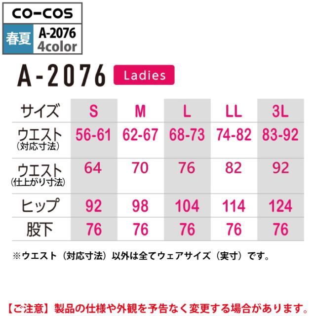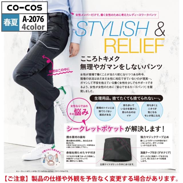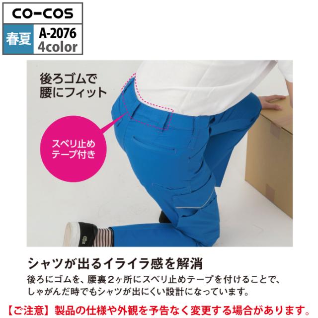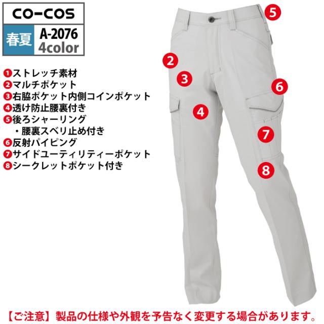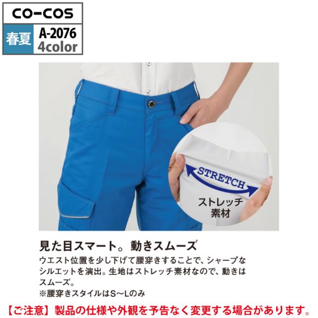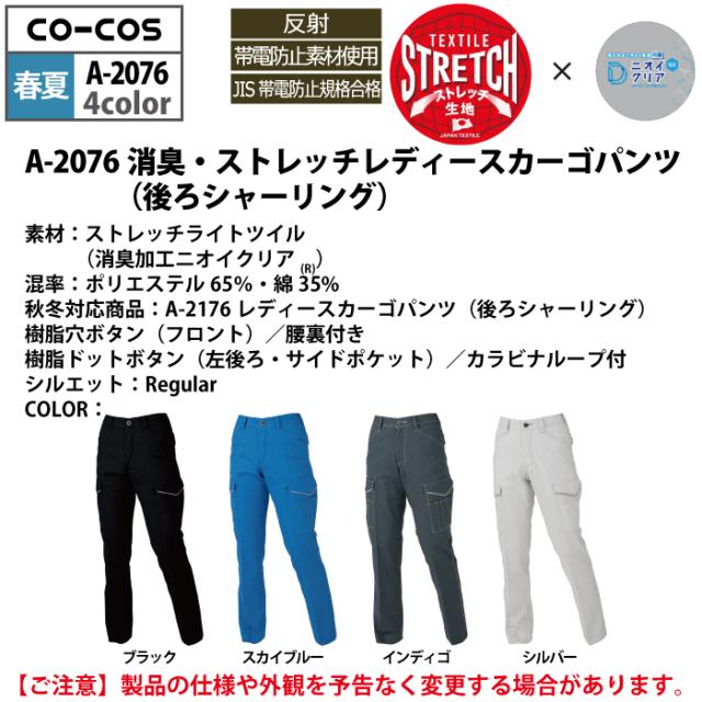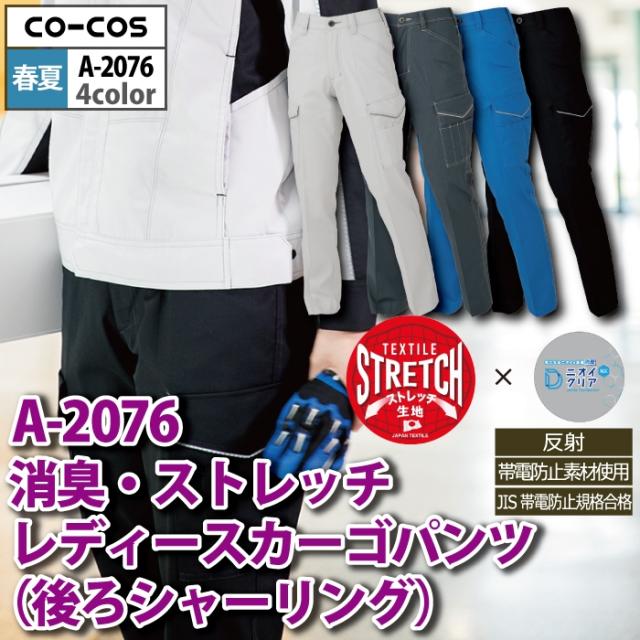 コーコス 作業服 春夏用 A-2076 消臭ストレッチレディースカーゴパンツ(後ろシャーリング) 3L