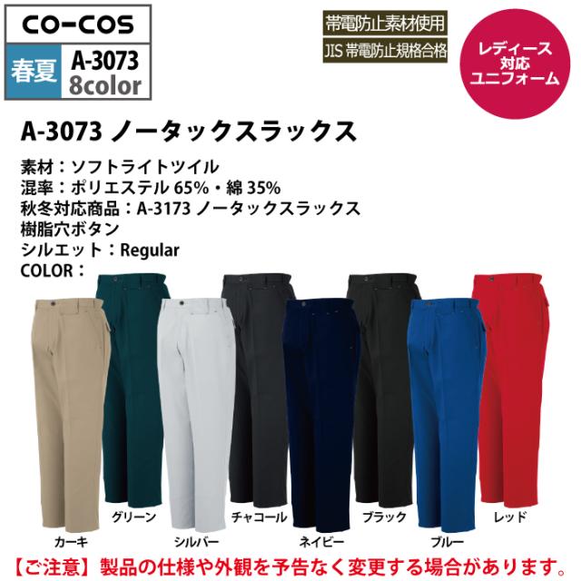 コーコス 作業服 春夏用 A-3073 ノータックスラックス 112-120