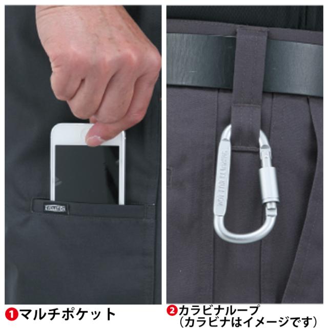 ◇帯電防止素材使用・マルチポケット・カラビナループ・バックルガード・樹脂穴ボタン・男女兼用