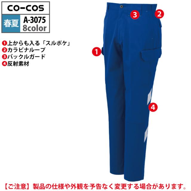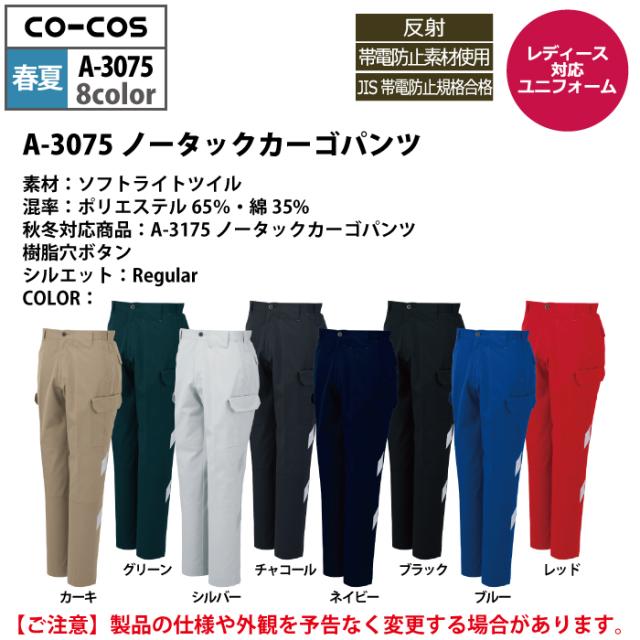 コーコス 作業服 春夏用 A-3075 ノータックカーゴパンツ 88-106